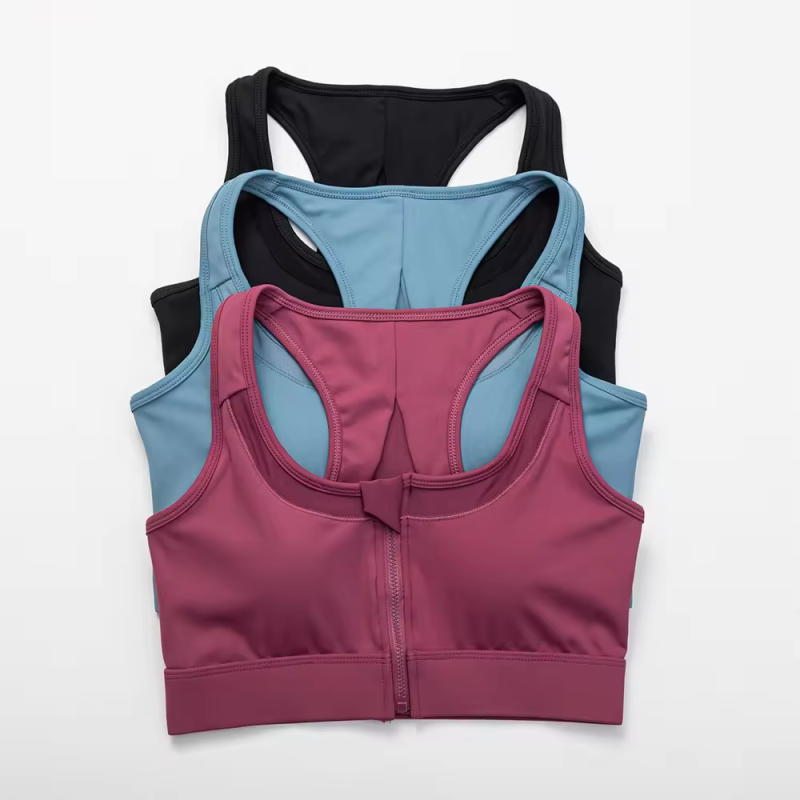 フロントファスナーがあるので、スポーツブラでも着脱しやすくなっています。
